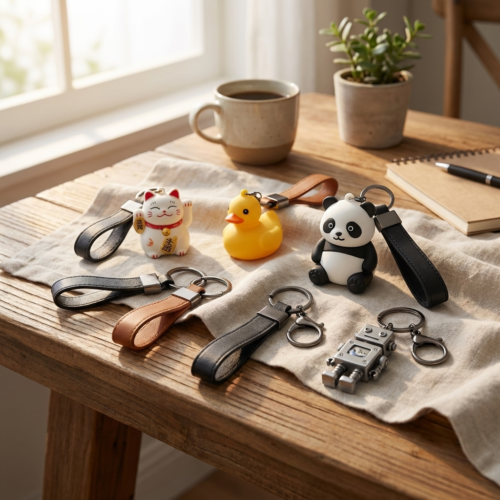 We offer a charming collection of handcrafted keychains, artisanal key holders, and unique everyday accessories. Each piece is thoughtfully curated to bring a touch of style and personality to your keys, bags, or daily essentials.